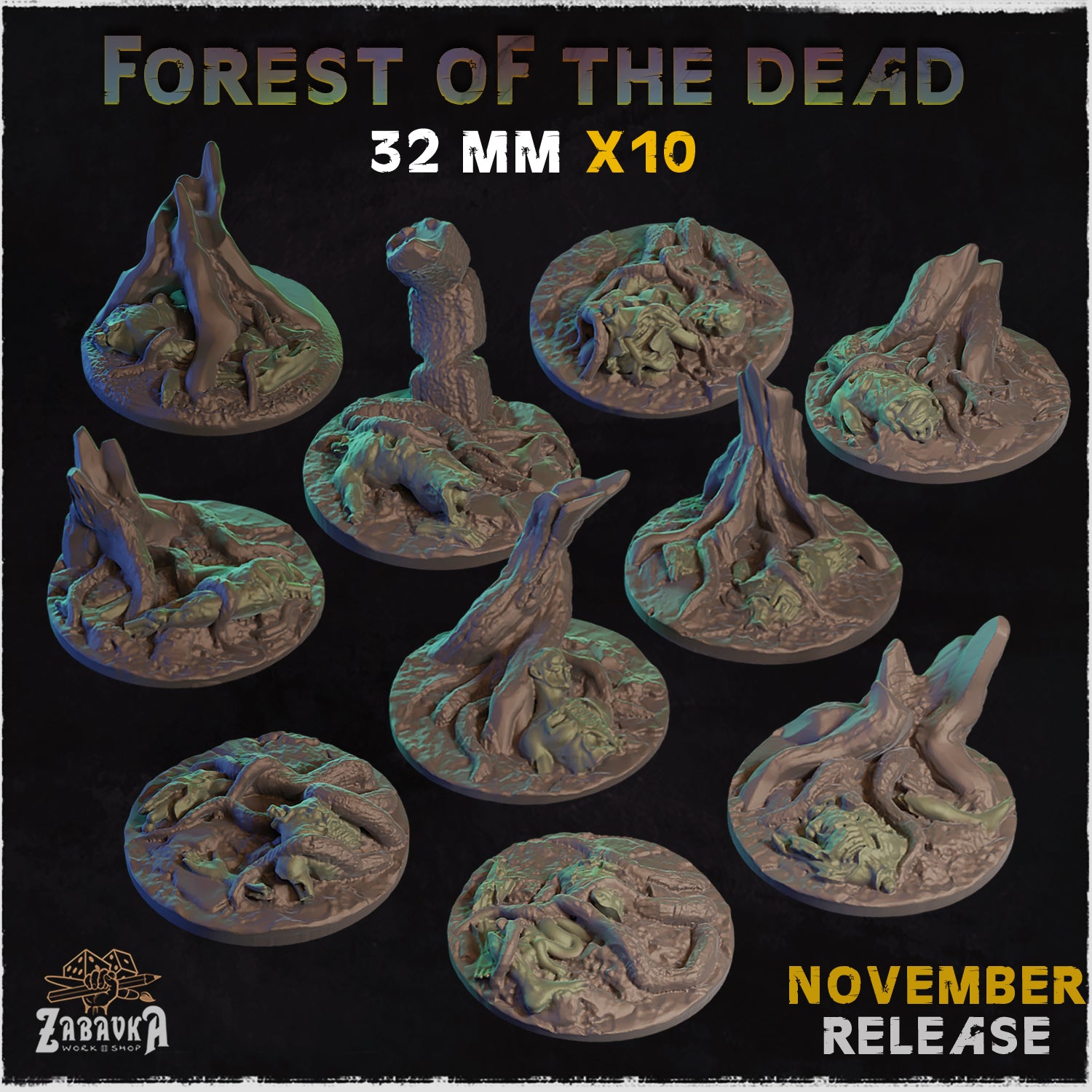 These bases and toppers were sculpted by Zabavka Workshop. All attribution belongs to them. This purchase is for 3D Prints of their STLs. Please support them on MyMiniFactory as well if you like their product!