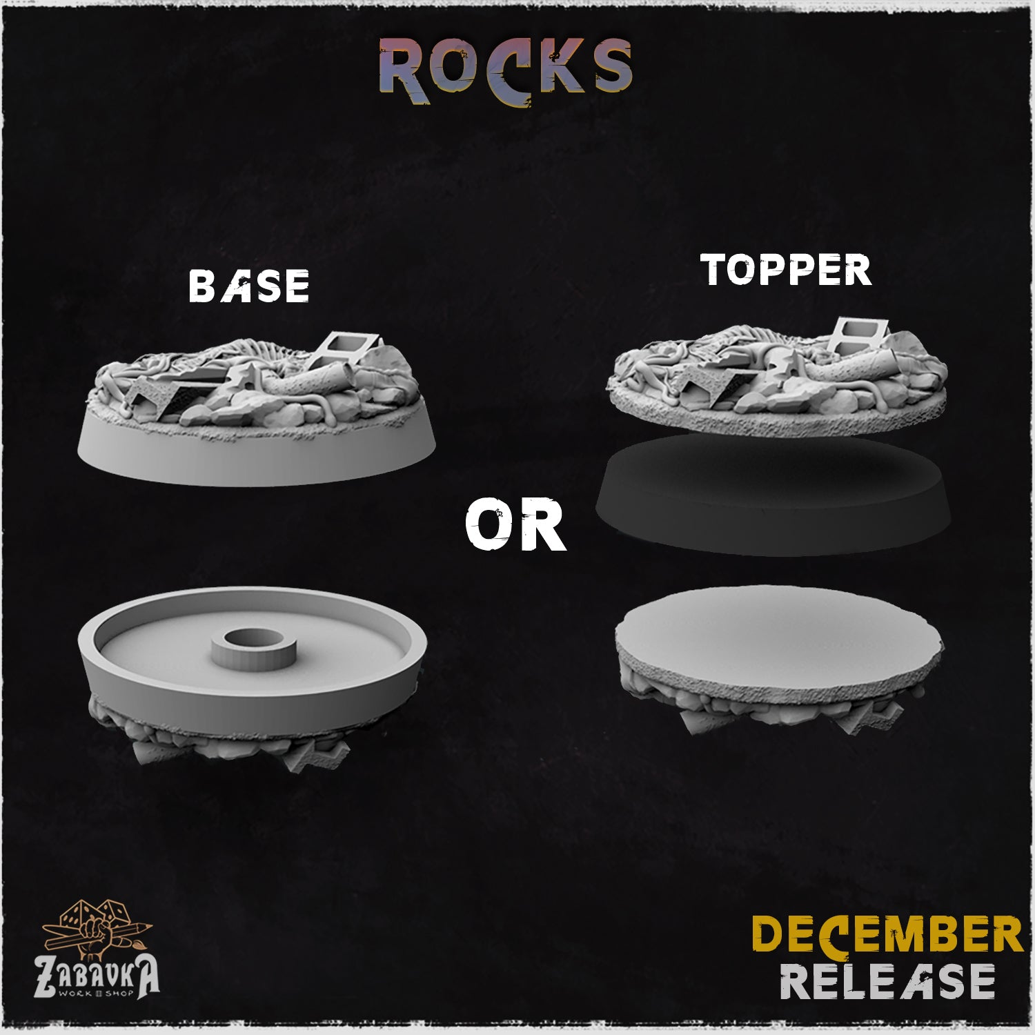 These bases and toppers were sculpted by Zabavka Workshop. All attribution belongs to them. This purchase is for 3D Prints of their STLs. Please support them on MyMiniFactory as well if you like their product!